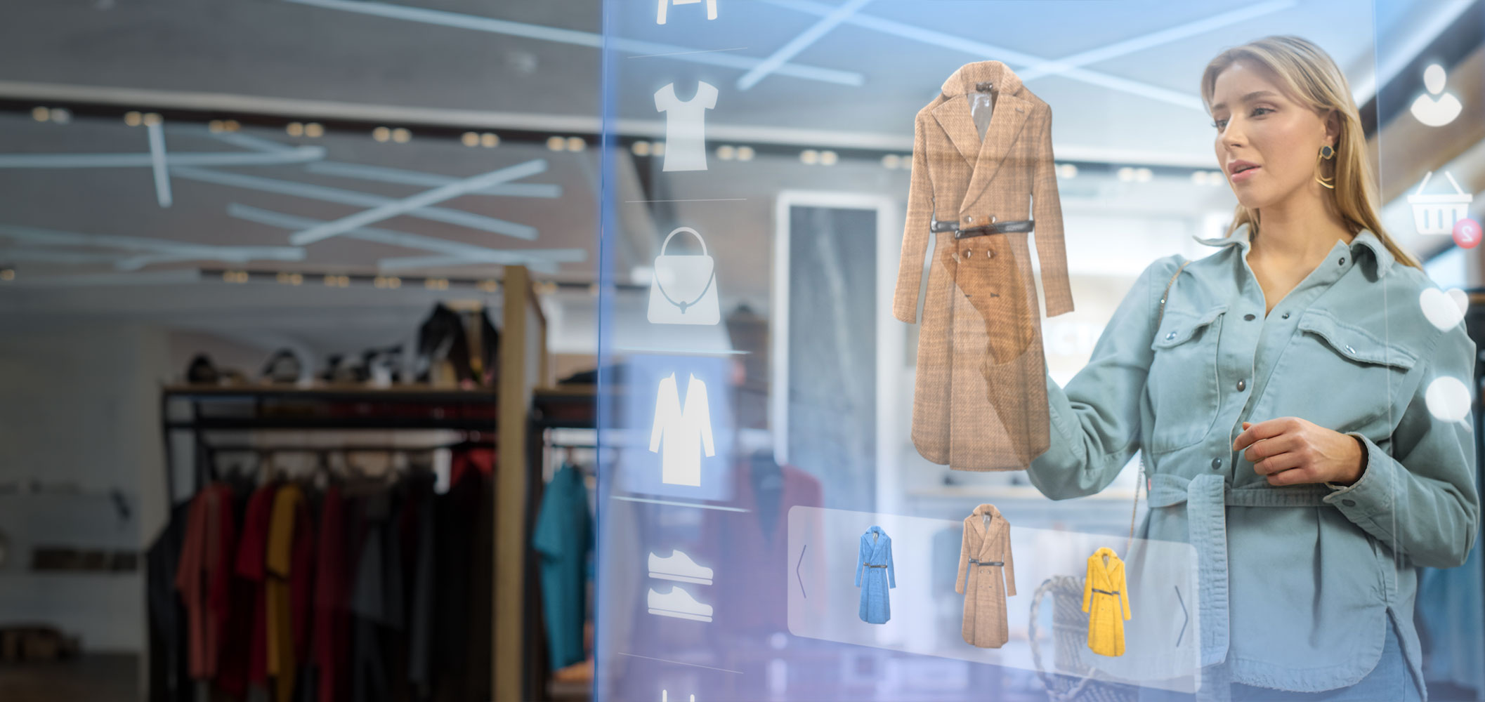 يمكن لتجار التجزئة في المتاجر التقليدية أو عبر الإنترنت تطبيق تقنيات الواقع الافتراضي المعزز لتقديم تجربة تسوق فريدة من نوعها. تساعد هذه الحلول على تقليل المرتجعات وزيادة تفاعل العملاء، من خلال تجربة المنتجات الافتراضية، وعرض المنتجات بزاوية 360 درجة، ومساعدة العملاء داخل المتجر.
